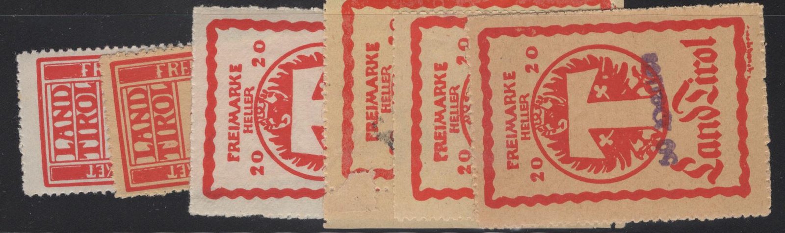 Tirol Paketkontrollmarken 3 unoverprinted and 3 overprinted issues ** F/VF except one stamp is ng quantity