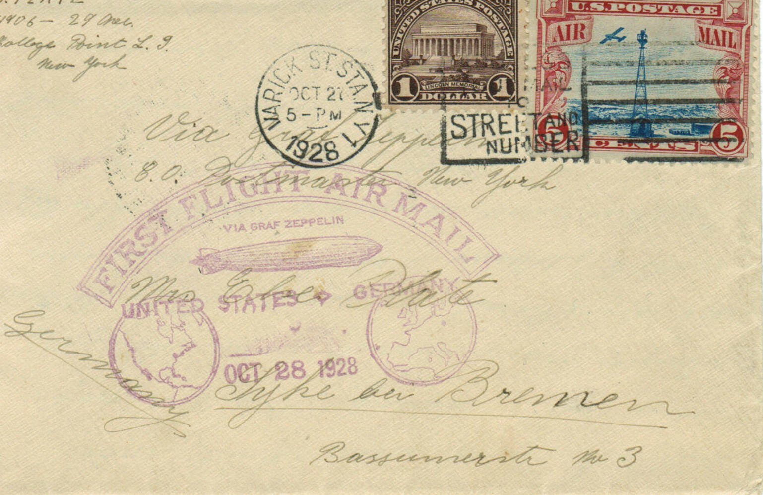 US 1st Flight from US on Graf Zeppelin 28 Oct 27small cover F/VF