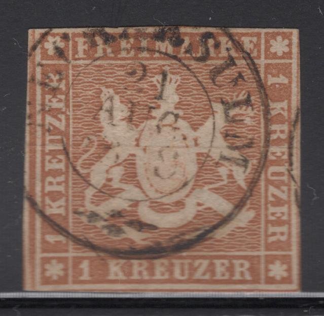 Wurttemberg Scott#: 1 Michel#: U VF 4 margins but small thin