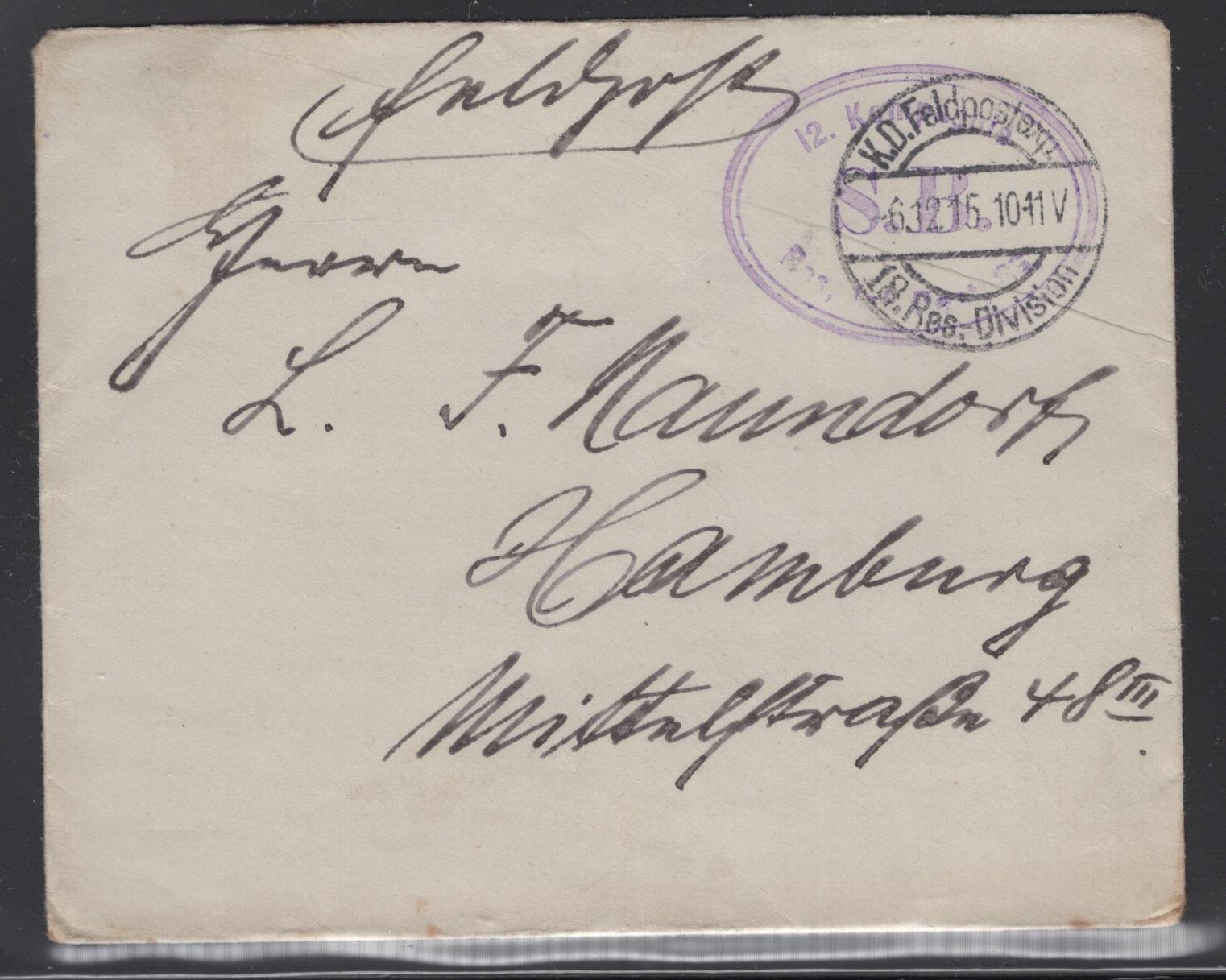 WWI Feldpost small cover 18 RES DIV 6 12 16 F/VF quantity