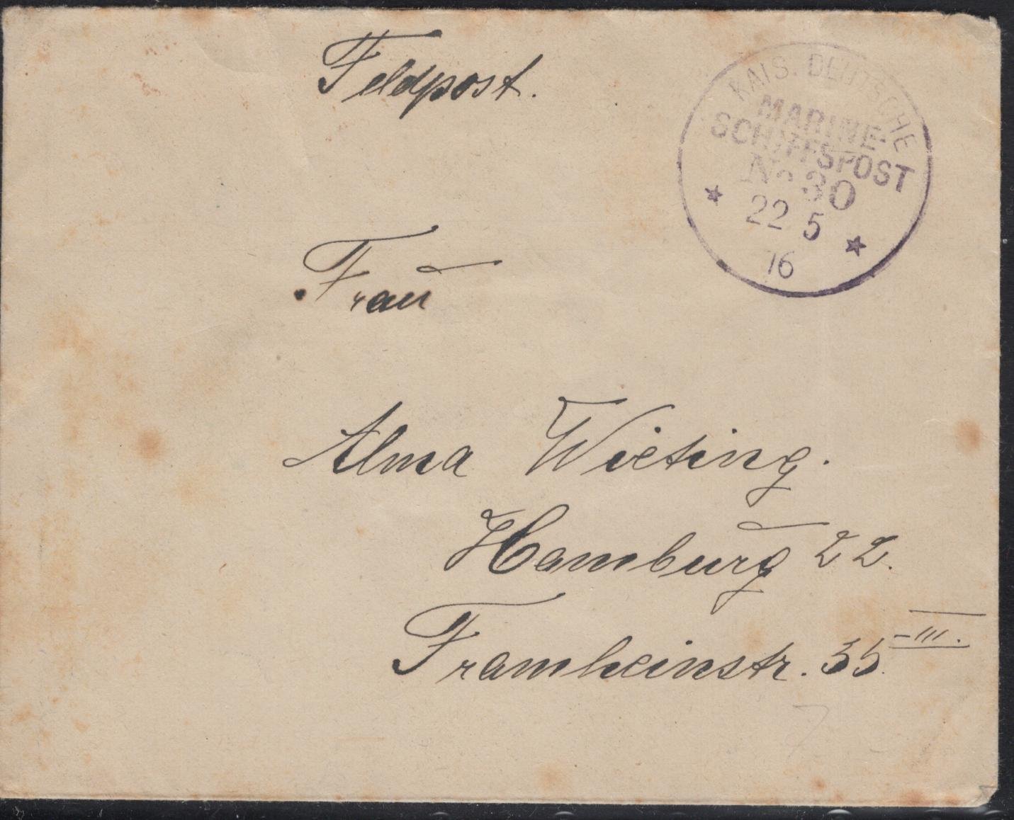 WWI Feldpost WWI Feldpost small cove “MARINE SCHIFFSPOST NO 30” f